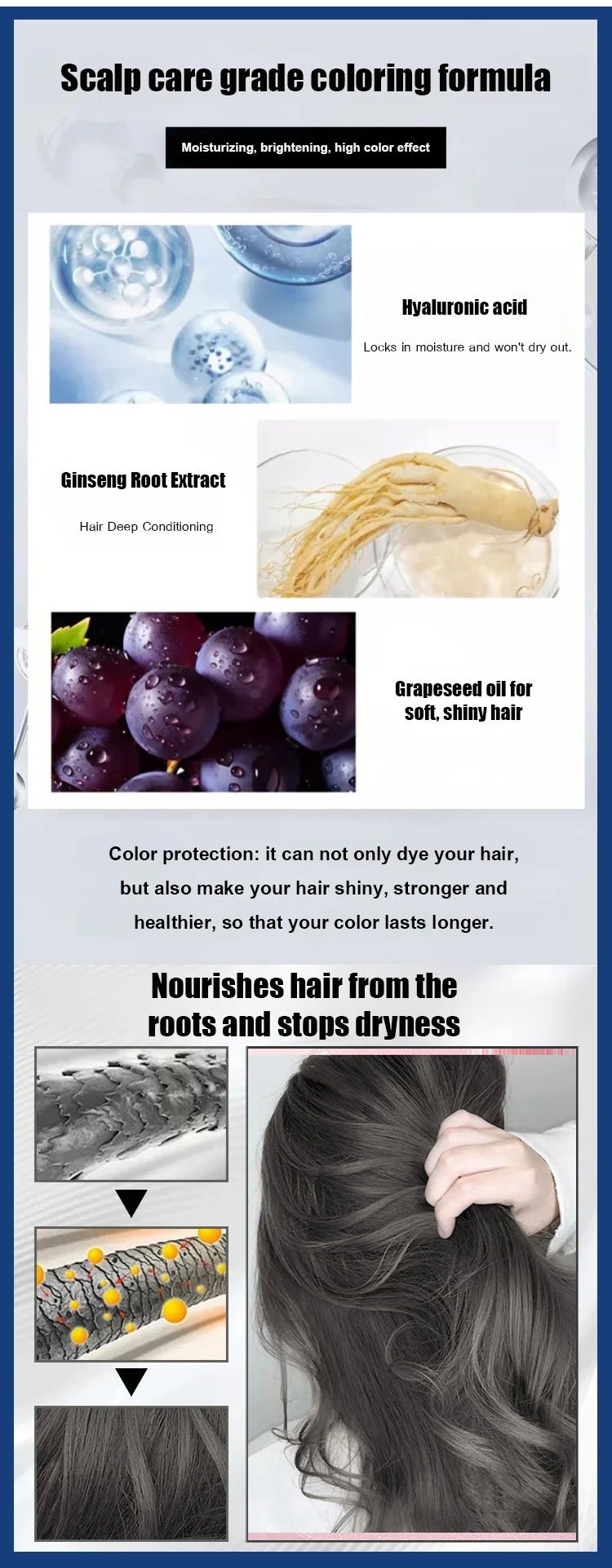 NOURISHING & HYDRATING - Enriched with natural oils and extracts, this hair dye not only colors but also nourishes your hair. It helps to hydrate and strengthen each strand, reducing damage and promoting overall hair health.